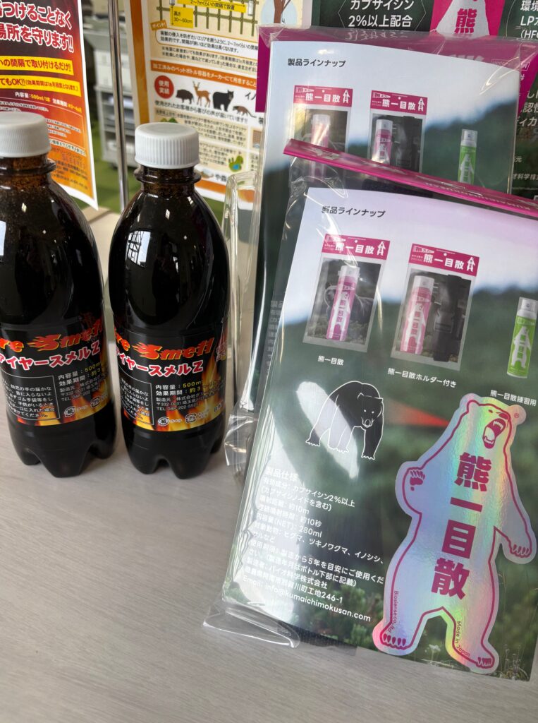 熊スプレーや、置くだけ強力忌避剤ファイヤースメルZなど